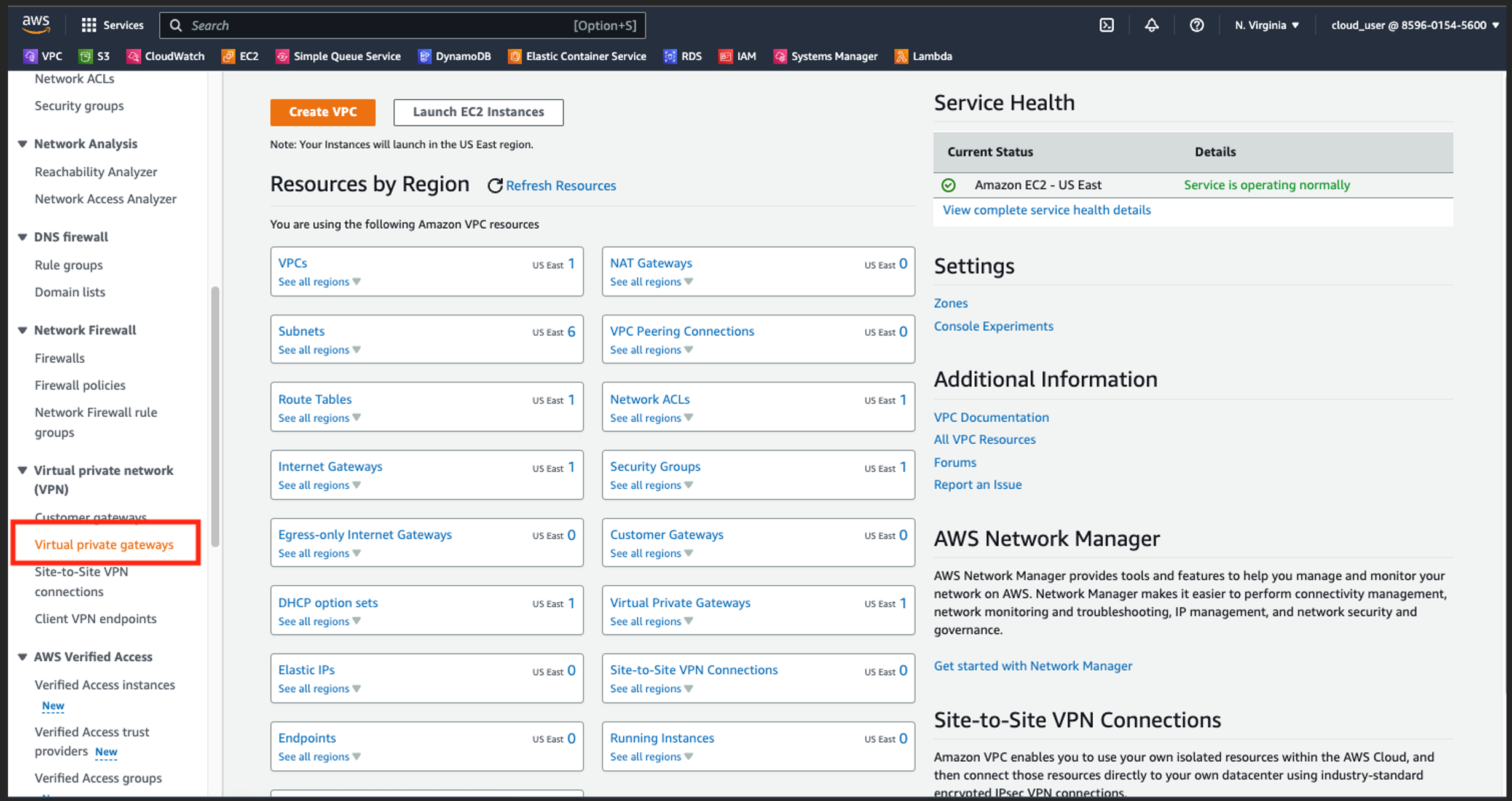 1 – Effettuate l’accesso alla dashboard VPC.