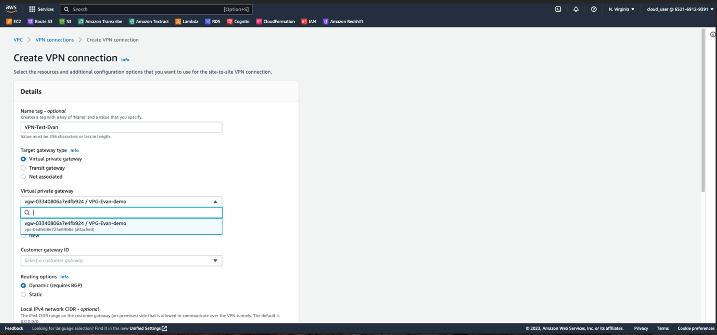 8- Create un Customer Gateway (CGW) fornendo i dati necessari e poi fate clic sul pulsante “Crea”.