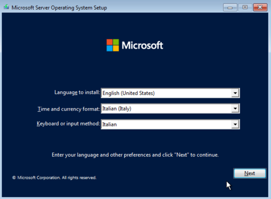 A questo punto non ci rimane altro che accendere la VM e seguire il processo di installazione di Windows Server proprio come su una classica macchina fisica!
