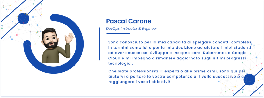 Sono conosciuto per la mia capacità di spiegare concetti complessi in termini semplici e per la mia dedizione ad aiutare i miei studenti ad avere successo. Sviluppo e insegno corsi Kubernetes e Google Cloud e mi impegno a rimanere aggiornato sugli ultimi progressi tecnologici.