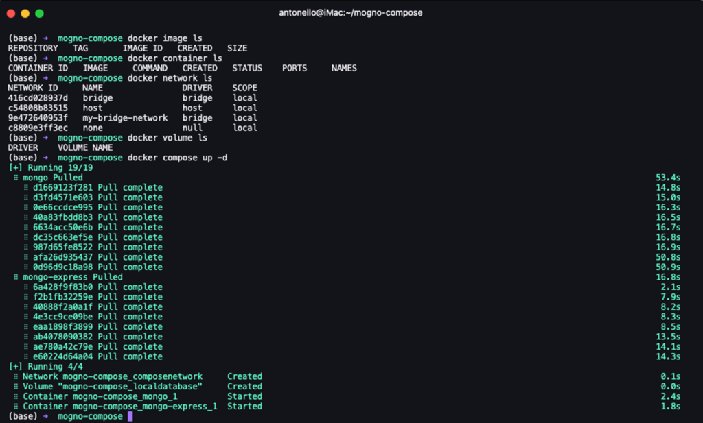 Prima di iniziare, è importante notare che oltre a definire una rete per consentire la comunicazione tra i due servizi, abbiamo anche bisogno di un volume per il database, in questo modo i dati saranno salvati e persisteranno tra le esecuzioni. Inoltre, Mongo Express richiede che il servizio Mongo esista già per essere eseguito e funzionare correttamente.