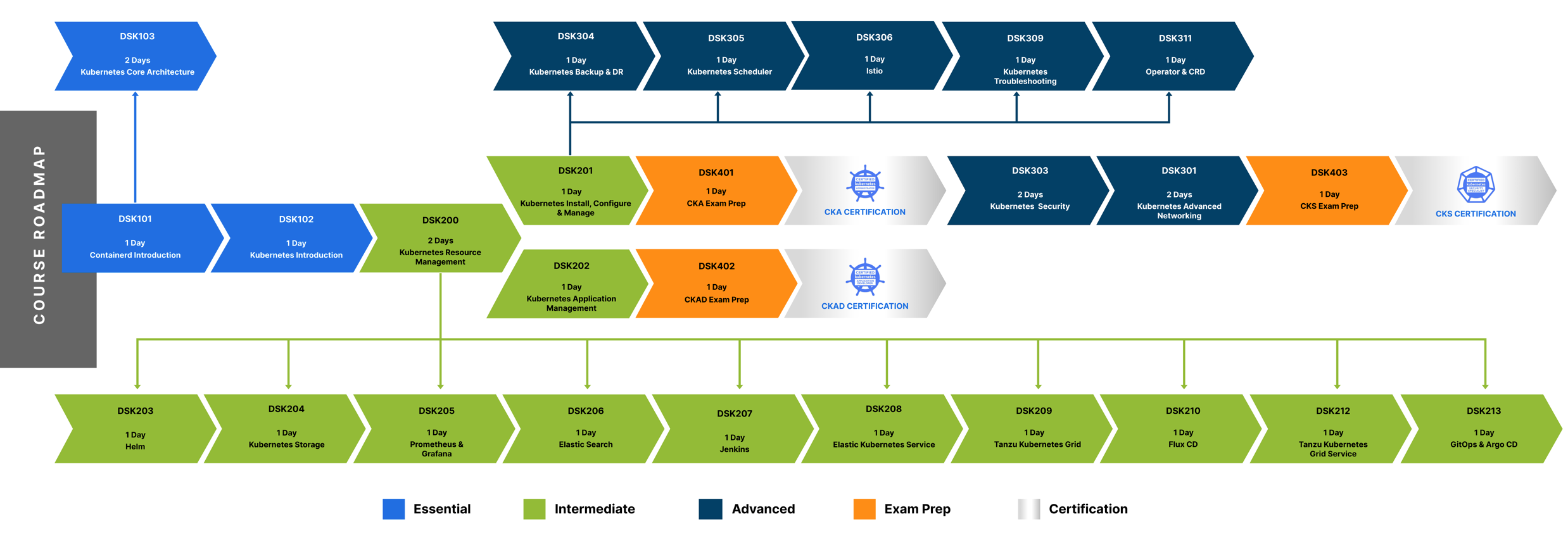 Scopri i dettagli di ogni corso Kubernetes DSK consultando i contenuti di ogni scheda o