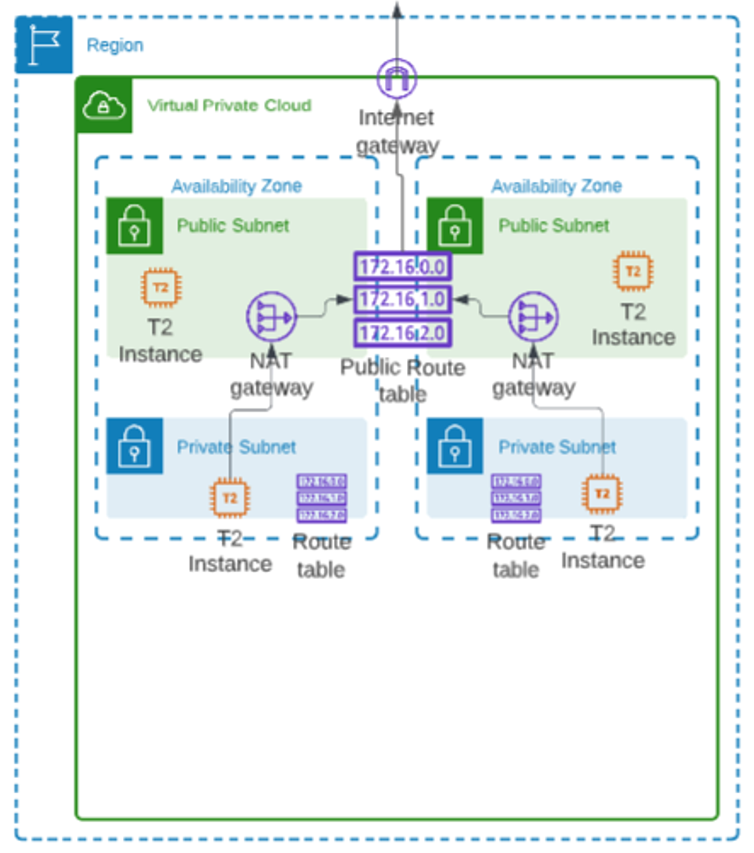Per proteggere le risorse AWS, è consigliabile utilizzare sottoreti private. Utilizza un host bastione o un dispositivo NAT per fornire l’accesso Internet per l’accesso Internet, ad esempio istanze EC2, in una sottorete privata.